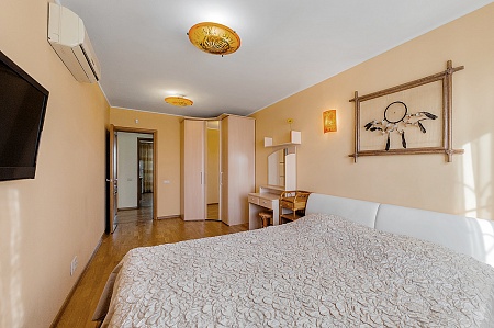 В квартире бесплатный WiFi-интернет, кабельное ТВ, кондиционеры. Большая лоджия. Просторный санузел с окном, оснащенный гидромассажной ванной и сауной. В квартире есть вся необходимая бытовая техника и мебель, включая кондиционеры, плоские телевизоры в каждой комнате и гостиной, стиральную машину, плиту,микроволновую печь, холодильник.