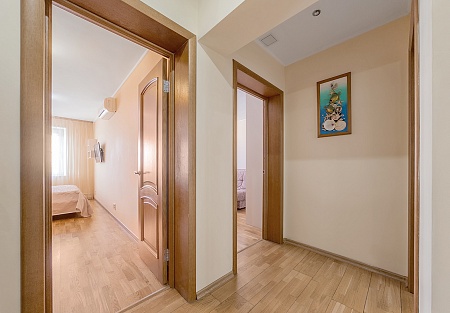 В этом же подъезде на 10-м этаже (прямо под данными апартаментами) доступны для аренды 3х комнатные апартаменты с 3-мя раздельными спальными комнатами (спальные места 2+2+1) Green Apartment.