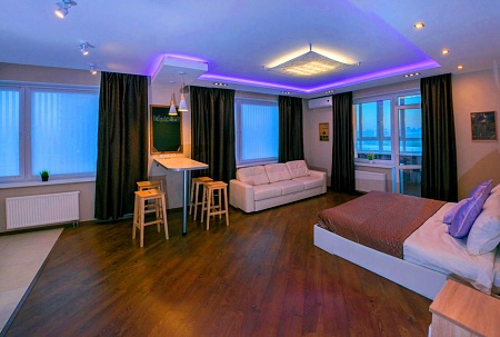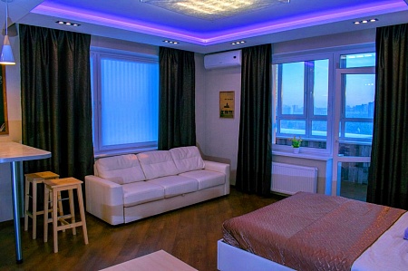 Сама квартира расположена на 16 этаже, откуда открывается захватывающий вид на город, особенно романтична и красива его вечерняя панорама (смотрите фото).