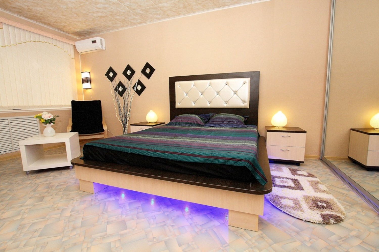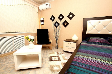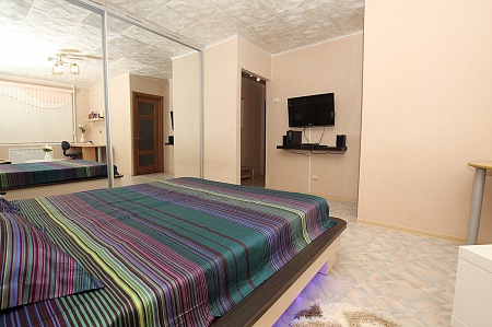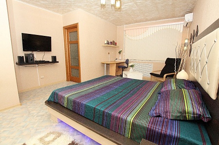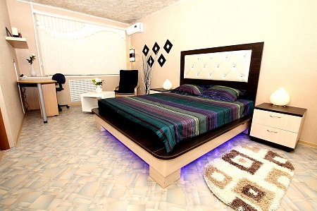 Уютная студия площадью 35 кв.м. с дизайнерским интерьером в этническом стиле – отличный вариант для аренды квартиры посуточно в г.Челябинске. Дом находится в 5 минутах ходьбы от пл.Революции. В квартире есть: WiFi-интернет, кондиционер, стильная мебель, полностью укомплектованная кухня. Снять стресс после деловых будней поможет гидромассажная ванная (джакузи), которая идеально способствует вечерней релаксации. В свою очередь, дизайнерская кровать 180х200 с кожаной отделкой, ортопедическим матрасом и изумительной внутренней подсветкой вместе со стильными деталями интерьера создают для Вас отличную романтическую атмосферу, в которую захочется возвращаться снова и снова…