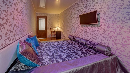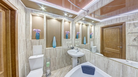 Оригинальная планировка, многоуровневое освещение потолков и не только - керамический пол в гостиной со встроенными светодиодами, а так же огромная двуспальная кровать King Size, кондиционер, рабочее место, безлимитный WiFi и гидромассажная ванная - всё это в сумме призвано сделать Ваше прибывание в данной квартире максимально комфортным.