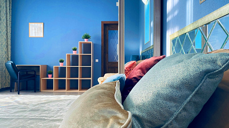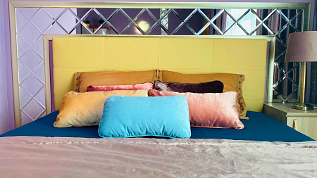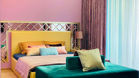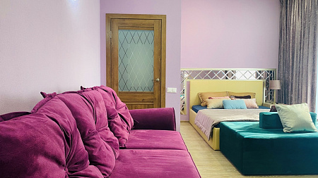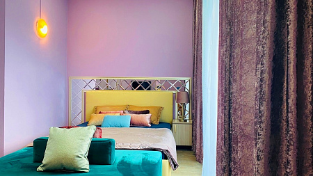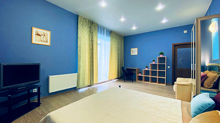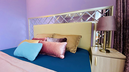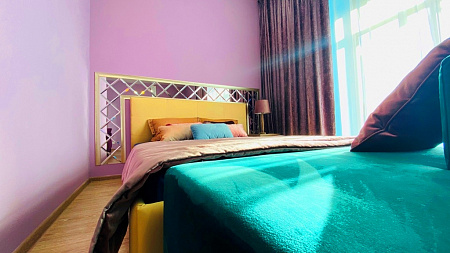 Апартаменты имеют 2 спальни, просторную кухню-гостиную и оснащены по наивысшему классу: помимо "стандартного набора" бытовой техники в квартире мягкая кожаная мебель в гостиной и спальнях, безлимитный WiFi, просторная лоджия, на которую спроектирован выход из обеих спален. Количество спальных мест: основные места 2+2+2 (двуспальная кровать в каждой спальне и раскладной диван в одной из спален). Имеется так же раскладной диван в гостиной 150*190, на котором могут при необходимости дополнительно разместиться до 2 человек.
