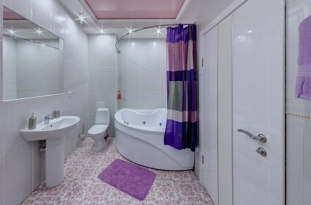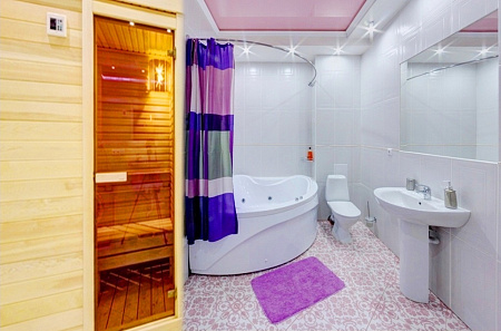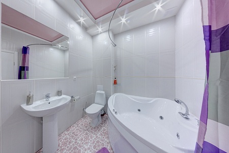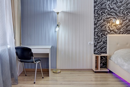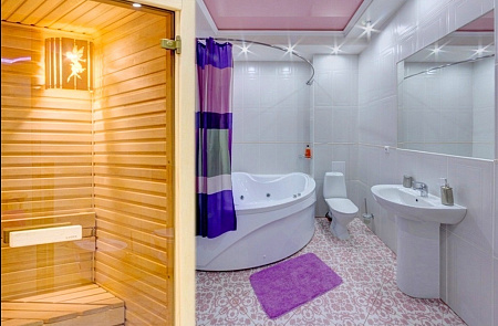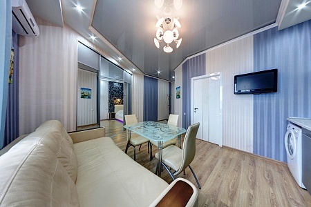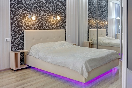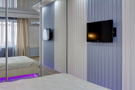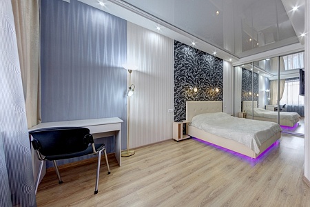 Сама квартира оснащена по высочайшему классу! Дизайнерский интерьер с многоуровневой системой освещения, уютная спальня с кроватью king-size, оснащенная LED-подсветкой, просторная лоджия с великолепным панорамным видом на центр города - (смотрите реальные фото), а так же объемная ГИДРОМАССАЖНАЯ ванна, САУНА, WiFi–интернет и система кондиционирования – всё это образует концепцию уникального гостиничного опыта от компании «ИннХоум».