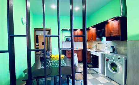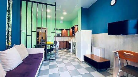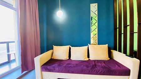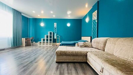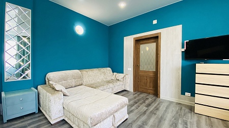 Апартаменты имеют 2 спальни, просторную кухню-гостиную и оснащены по наивысшему классу: помимо "стандартного набора" бытовой техники в квартире мягкая кожаная мебель в гостиной и спальнях, безлимитный WiFi, просторная лоджия, на которую спроектирован выход из обеих спален. Количество спальных мест: основные места 2+2+2+2+2 (двуспальная кровать в каждой спальне и раскладной диван в одной из спален). Имеется так же раскладной диван в гостиной 150*190, на котором могут при необходимости дополнительно разместиться до 2 человек.