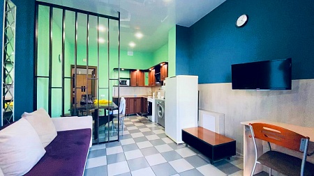 По внутреннему комфорту и оснащению данная квартира относится к категории премиум апартаментов. Она полностью укомплектована всевозможной бытовой техникой, а беспроводной интернет поможет оставаться на связи, кому это необходимо.