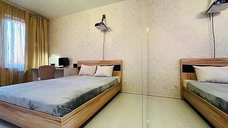 3 раздельные комнаты, оборудованные всем необходимым - мебелью и бытовой техникой.